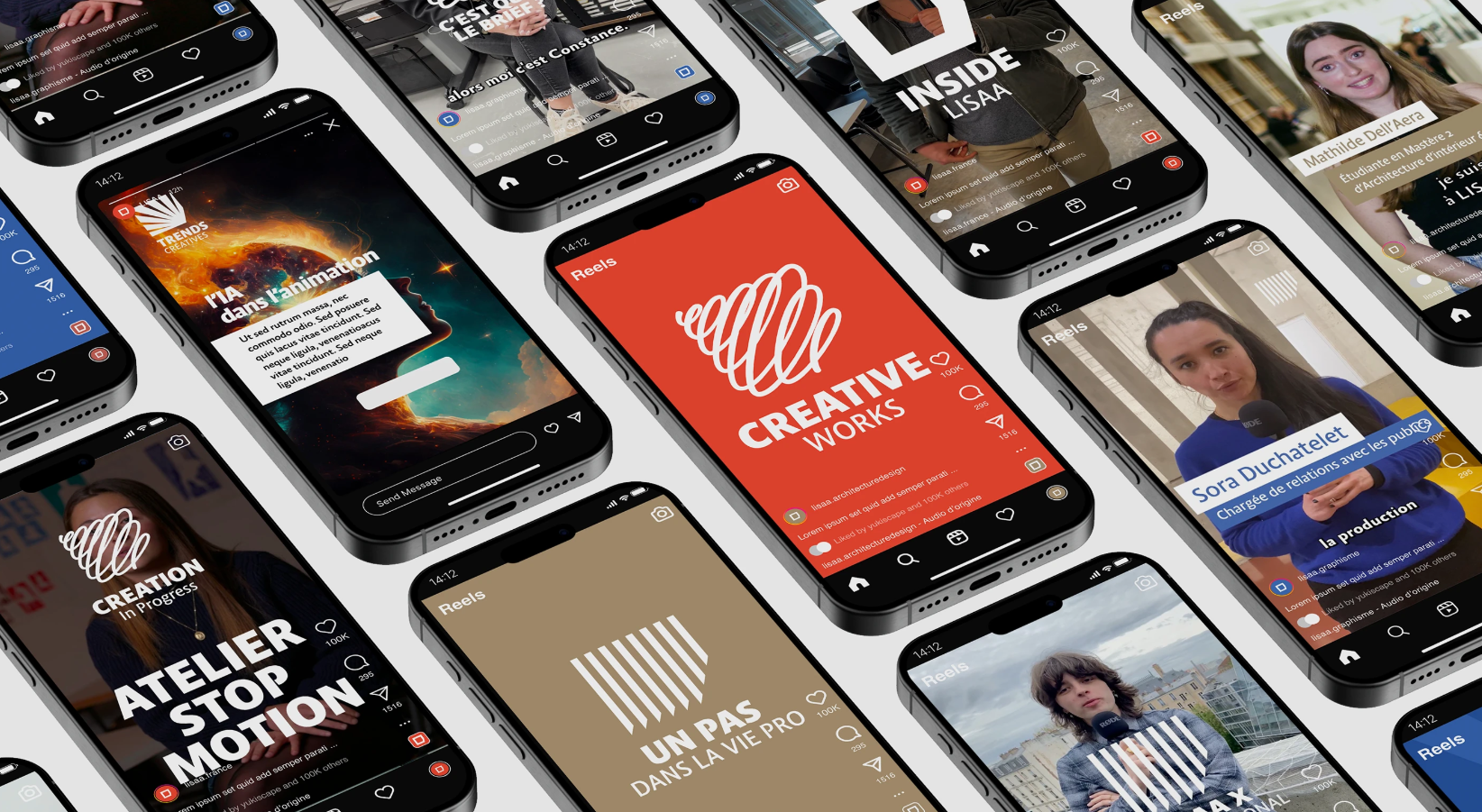 Conception de la charte éditoriale des réseaux sociaux ainsi que le système d’identité vidéo des écoles LISAA.