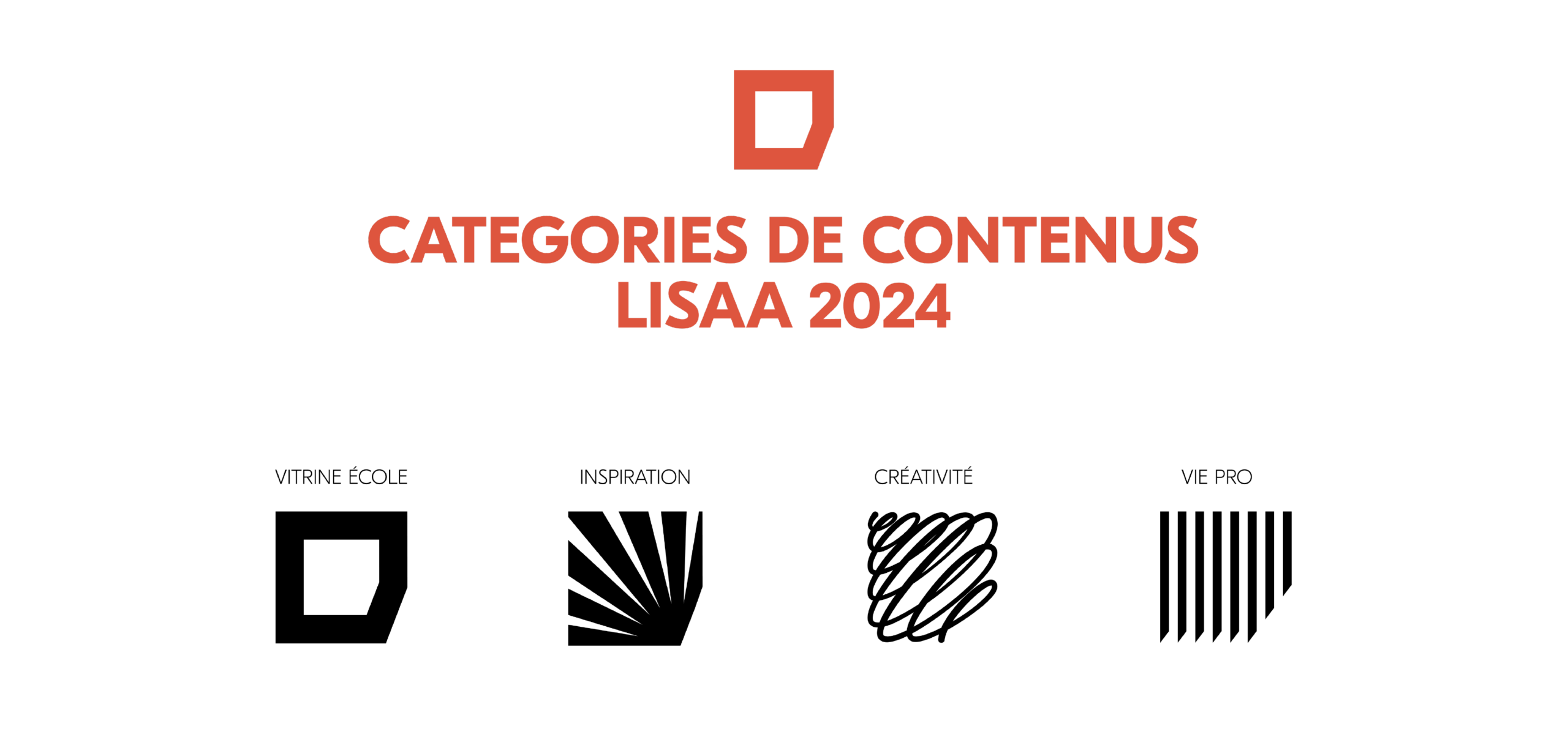 Quatre icônes basées sur le logo de LISAA, chacune représentant une catégorie de contenu.