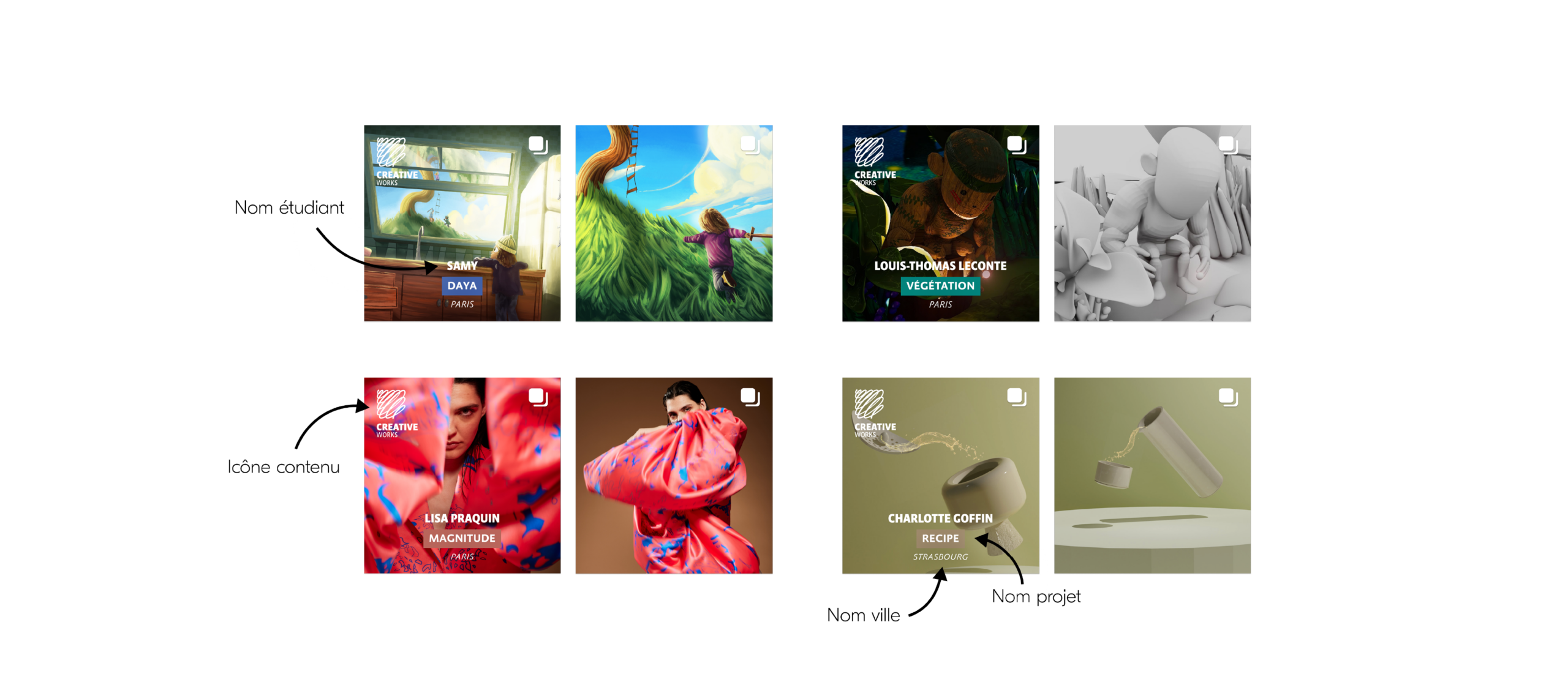 • un positionnement des icônes selon la catégorie de contenu,